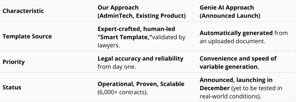 While Genie AI may have focused on the impressive task of automatically generating the template, we focused on the most critical task – ensuring legal compliance and practical utility.